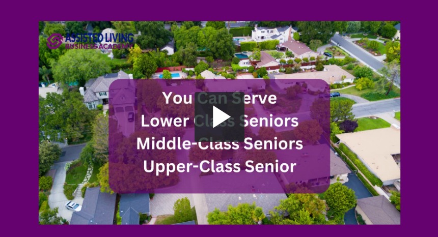 In this video you will learn how you can penetrate the Booming Assisted Living Industry, no matter where you are financially. You will learn about the Lower class seniors, Middle Class Seniors and Upper class Seniors.